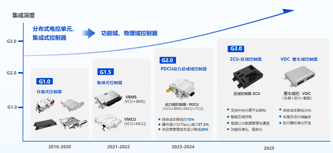 在电控产品端,从分布式电控向功能域、物理域各类域控升级,在汽车电动化与智能化领域产品矩阵逐步完善。目前ZCU达到装车状态,动力域控PDCU1.0已在2023年完成开发,并获得客户定点。